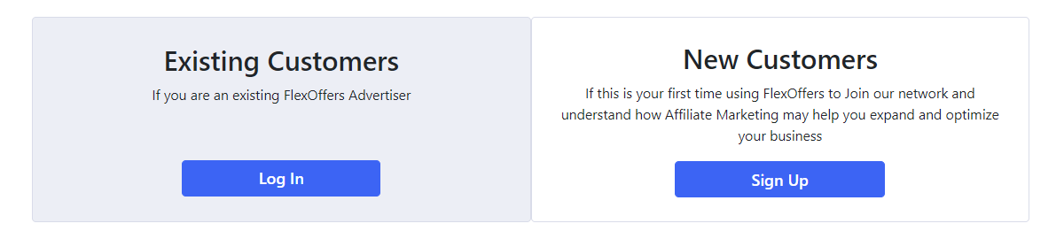 5. If you have an existing FlexOffers account, click the Log In button and log into your account.