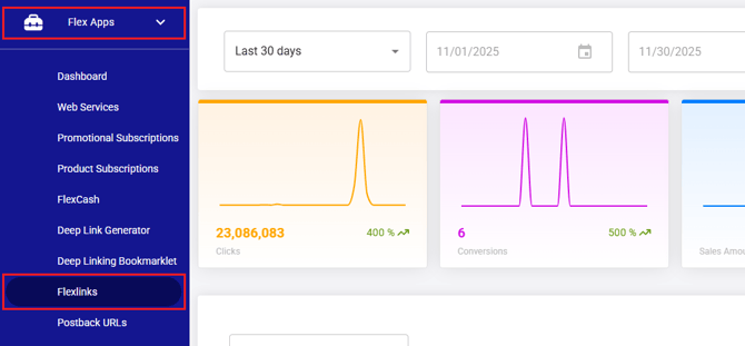 1. Click the Flex Apps menu and then select Flexlinks to go to the Flexlinks page.